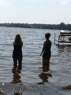 We spent Independence Day up at the cabin with relatives. When we first got there, we had fun with Carol, Mike, Mitch, Kelly and Robert. Later, Grandma and Lois came up. We spent most of the time swimming. Mitch was so sweet to help his cousins fish. Mike cleaned the fish they caught to make for a meal!